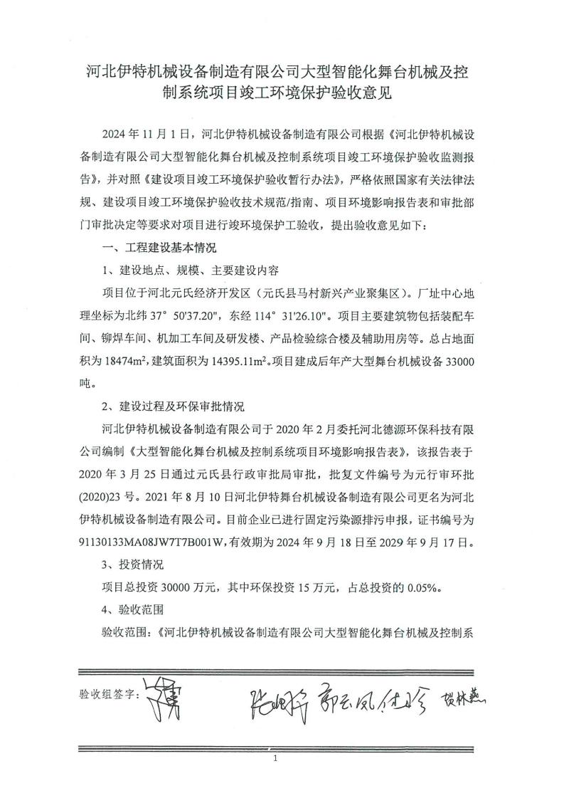 根据《国院关于改<建设项目环保护管理条例>的决定》(国务院令第682号)以及生态环境部《建设项目竣工环境保护验收暂行办法》和河北省环境保护厅《建设项目环境影响评价文件审批及建设单位自主开展环境保护设施验收工作指引(试行)的通知》(冀环办字[2017]727号)有关要求,现将米兰·网站《米兰·网站大型智能化舞台机械及控制系统项目竣工环境保护验收监测报告)公示如下: