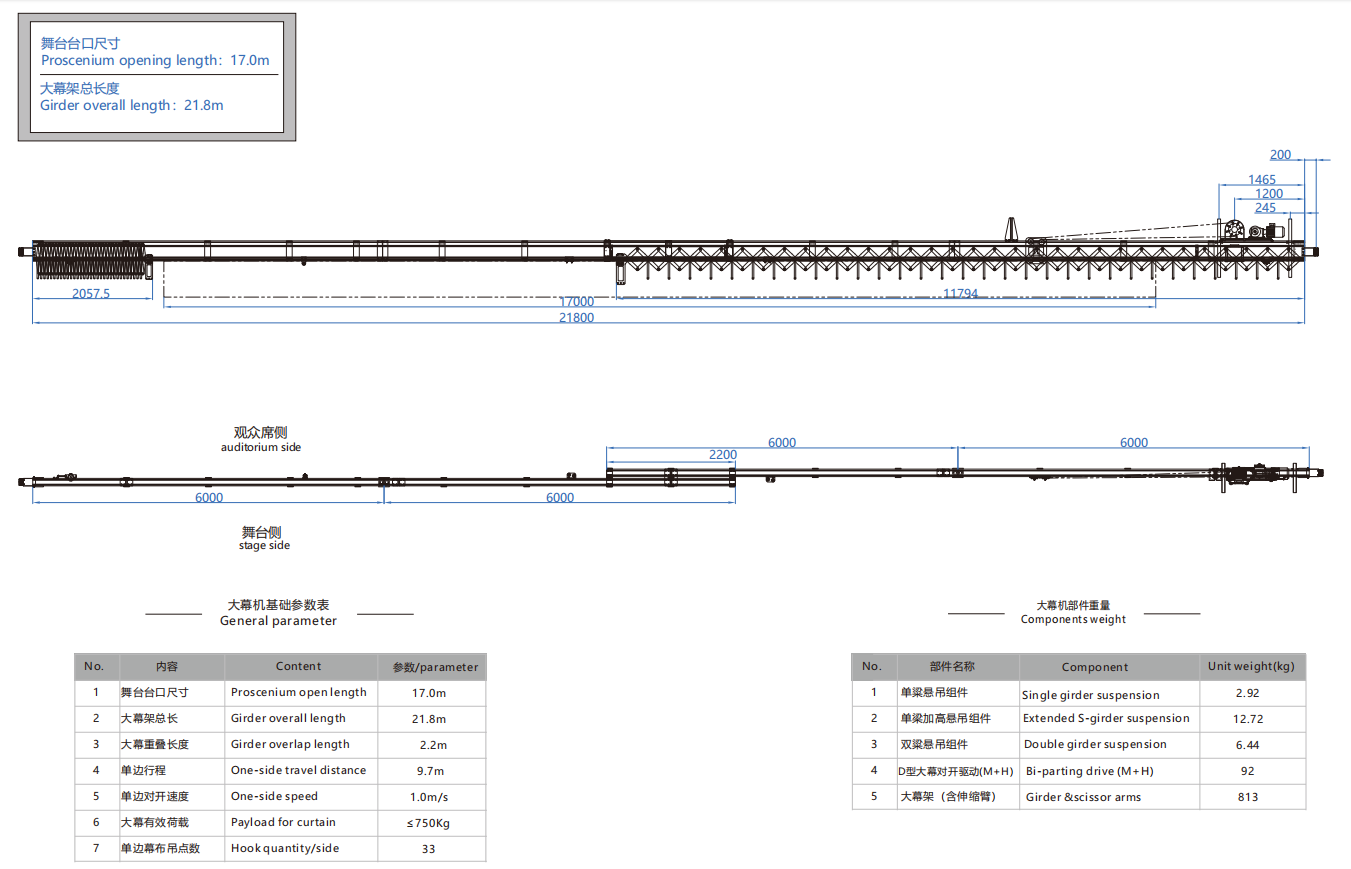 大幕机选型图 17.0m/21.8m